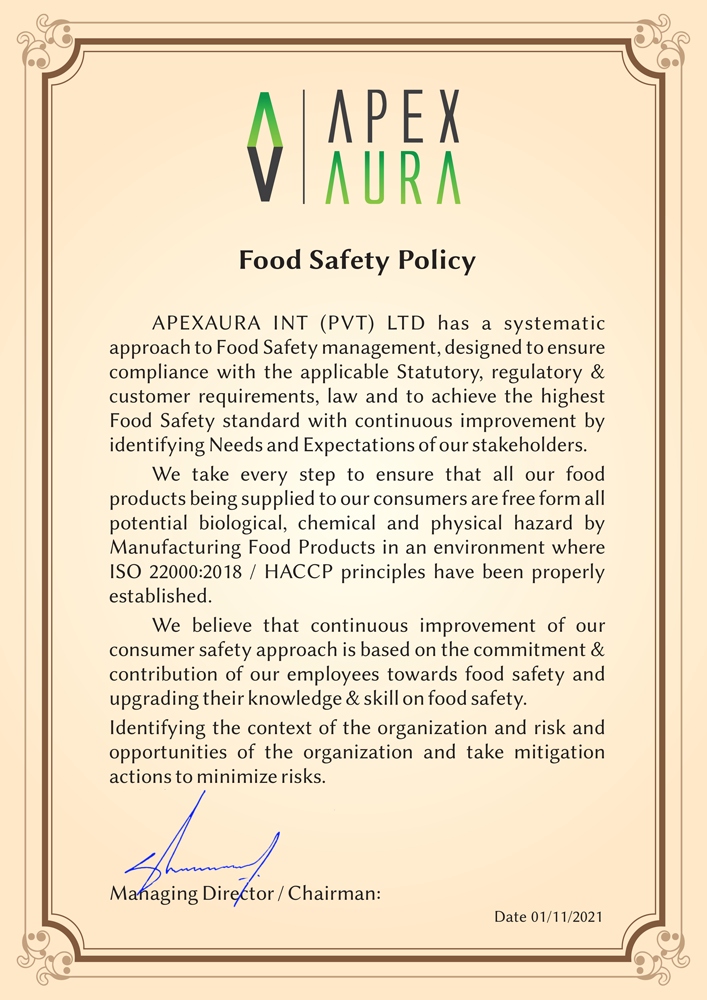 FOOD SAFETY POLICY (ISO 22000:2018)